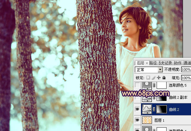 Photoshop给树林人物图片加上灿烂的青黄阳光色(5)