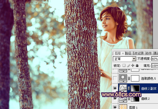 6、按Ctrl + J 把当前曲线调整图层复制一层,不透明度改为:60%,效果如下图。