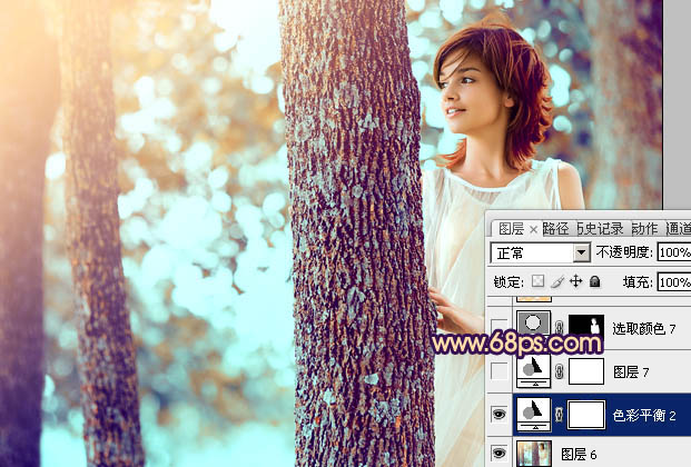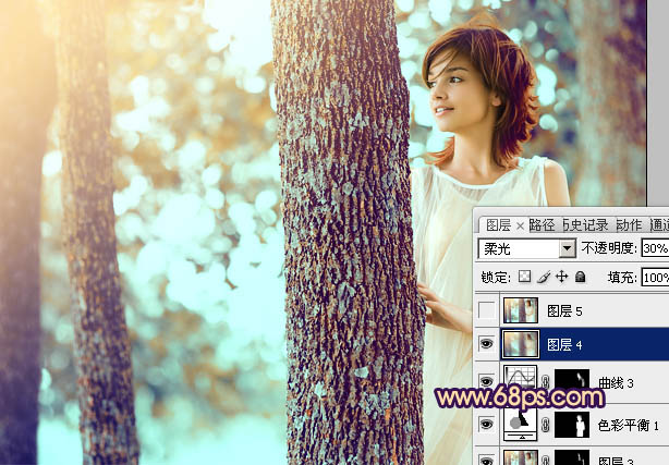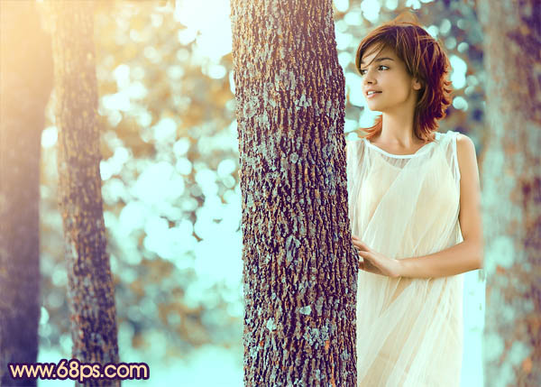Photoshop给树林人物图片加上灿烂的青黄阳光色(9)