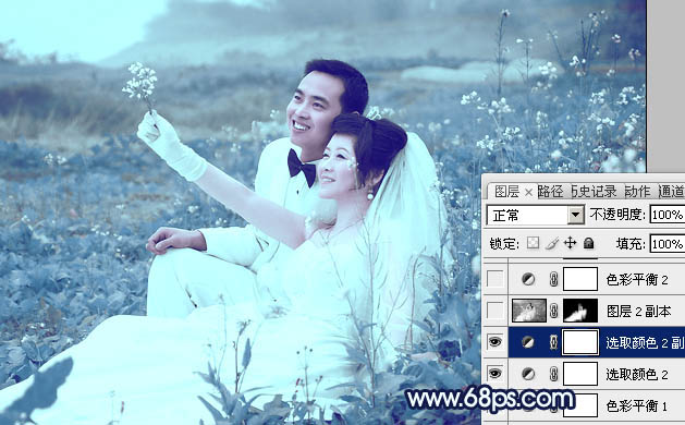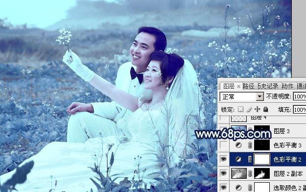 Photoshop打造梦幻的蓝青色外景婚片(6)