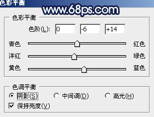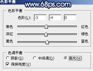 8、创建色彩平衡调整图层,对阴影,高光进行调整,参数设置如图20,21,效果如图22。这一步增加暗部及高光部分的蓝色。