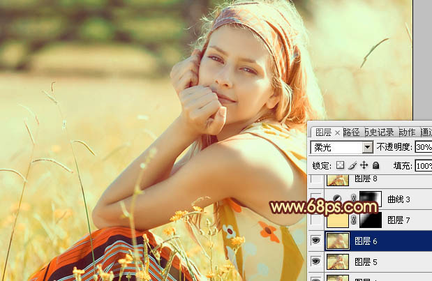10、新建一个图层,盖印图层。执行:滤镜 > 模糊 > 高斯模糊,数值为4,确定后把图层混合模式改为“柔光”,不透明度改为:30%,效果如下图。