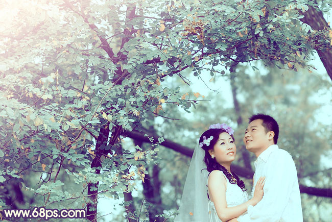 青色与暗紫色是组比较古典色调。大致调色过程:先分析图片的色调构成,然后把画面的主色转为青色,暗部转为暗紫色,高光部分可以渲染一些暖色等即可。