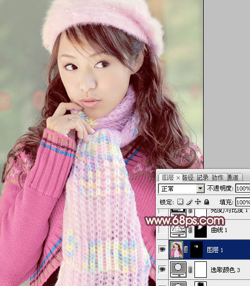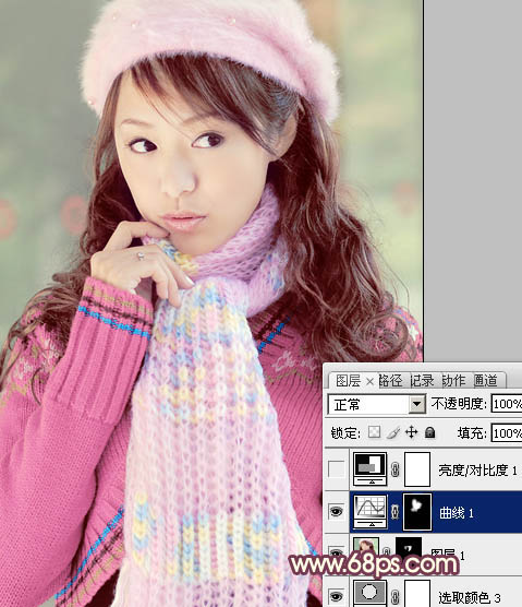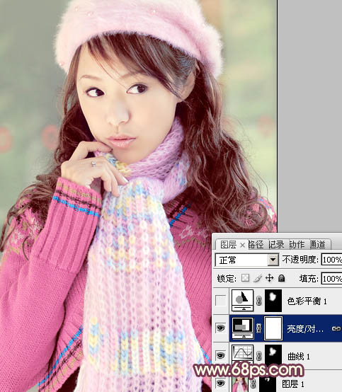 Photoshop给冬季美女图片加上淡紫色蜜糖色(5)