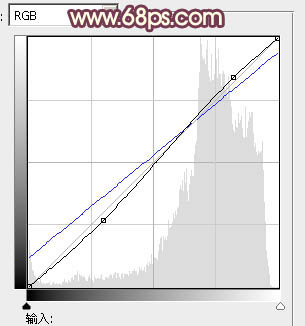 5、创建曲线调整图层,对RGB及蓝色进行调整,参数设置如图13,确定后把蒙版填充黑色,用白色画笔把人物脸部擦出来,效果如图14。这一步微调人物脸部颜色。