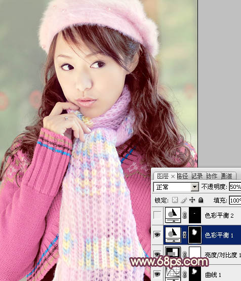 Photoshop给冬季美女图片加上淡紫色蜜糖色(6)