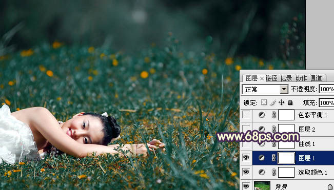 Photoshop给草地人物图片增加淡雅的蓝褐色(2)