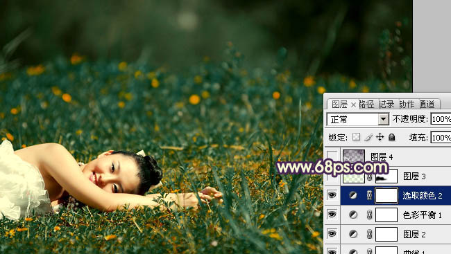 Photoshop给草地人物图片增加淡雅的蓝褐色(5)