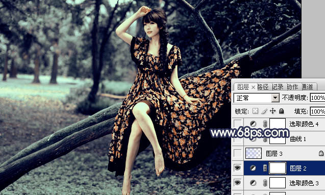 Photoshop打造暗调青蓝色树林美女图片(5)