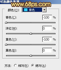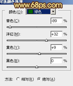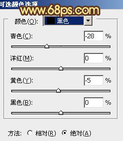 1、打开原图素材,创建可选颜色调整图层,对黄、绿、青、黑进行调整,参数设置如图1 - 4,效果如图5。这一步增加画面的暖色和青色。