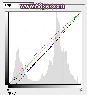 1、打开原图素材,创建曲线调整图层,对红、绿、蓝、RGB进行调整,参数设置如图1 - 4,确定后把图层不透明度改为:50%,再用黑色画笔把人物部分擦出来,效果如图5。这一步微调背景颜色。
