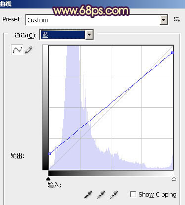 5、创建曲线调整图层,对蓝色进行调整,参数设置如图15,效果如图16。这一步增加图片的蓝色。