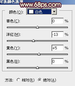 4、创建可选颜色调整图层,对白、黄、黑进行调整,参数设置如图8 - 10,效果如图11。这一步增加高光淡黄色,同时增加暗部褐色。