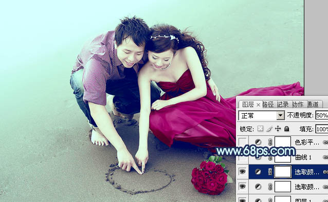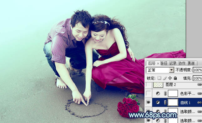 Photoshop给海滩情侣图片加上柔和的青紫色(4)