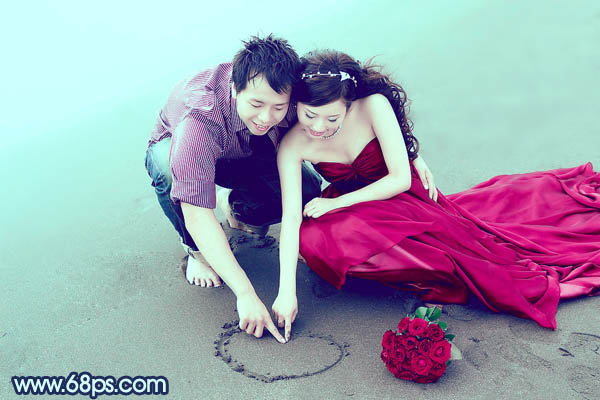 Photoshop给海滩情侣图片加上柔和的青紫色(7)