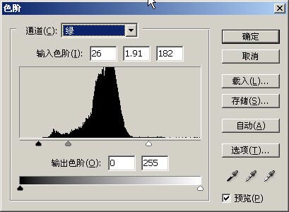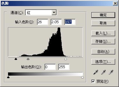 执行“图层>调整图层>色阶”命令,创建一个色阶的调整图层,在“色阶”对话框中设置如下面的图所示: