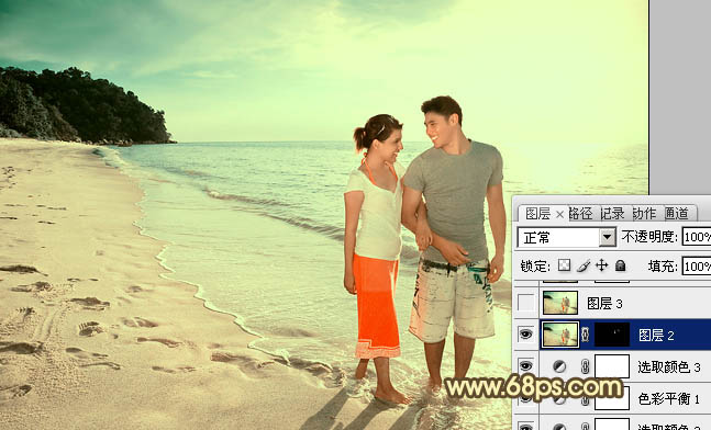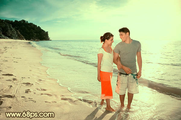 Photoshop调出海滩情侣图片温馨的暖色调(6)