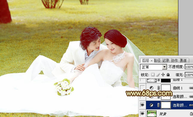 Photoshop调出绿茵婚片柔美的晨曦暖黄色(2)