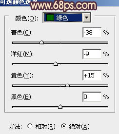 1、打开原图素材,创建可选颜色调整图层,对黄、绿、黑进行调整,参数设置如图1 - 3,效果如图4。这一步把背景部分的绿色稍微调亮一点,暗部装饰一些暗蓝色。