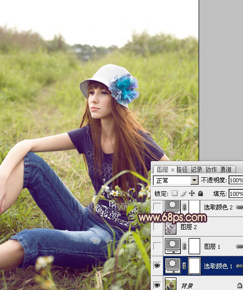 Photoshop给草地美女图片增加鲜艳的蓝黄色(2)