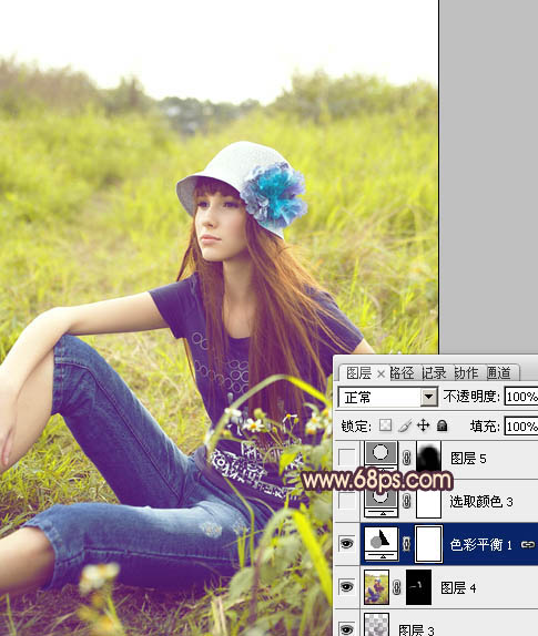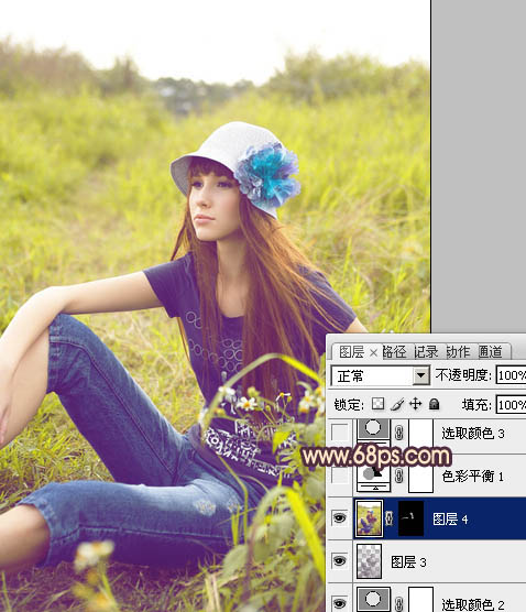 Photoshop给草地美女图片增加鲜艳的蓝黄色(5)