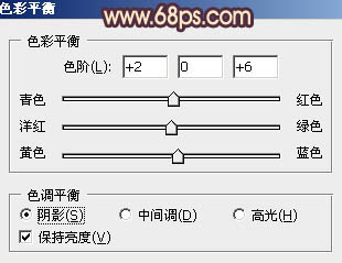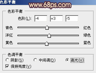 7、创建色彩平衡调整图层,对阴影,高光进行调整,参数设置如图11,12,效果如图13。这一步加上暗部及高光颜色。