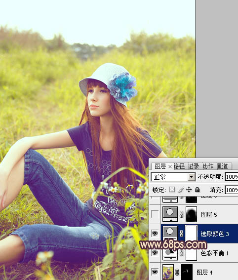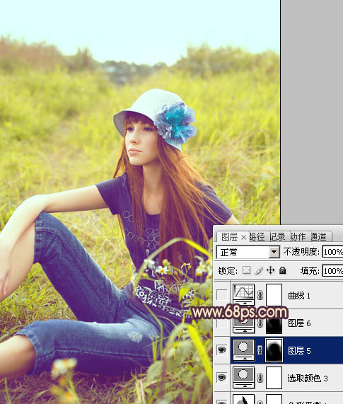 Photoshop给草地美女图片增加鲜艳的蓝黄色(6)