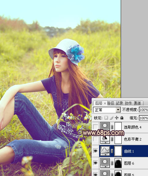 Photoshop给草地美女图片增加鲜艳的蓝黄色(7)