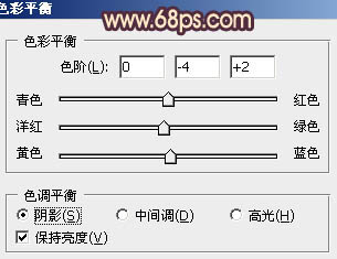 11、创建色彩平衡调整图层,对阴影,高光进行调整,参数设置如图20,21,效果如图22。