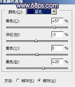 3、创建可选颜色调整图层,对红、青、蓝、黑进行调整,参数设置如图5 - 8,效果如图9。这一步增强图片的红色和蓝色。