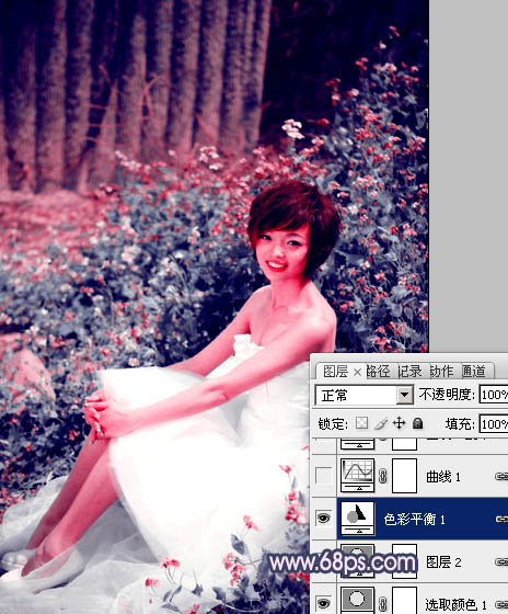 Photoshop调出外景人物图片柔和的古典暗调青紫色(4)