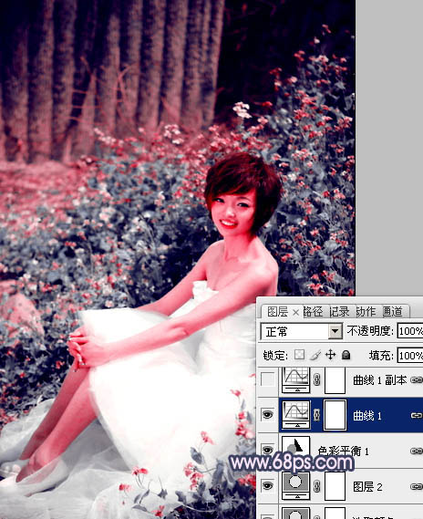 Photoshop调出外景人物图片柔和的古典暗调青紫色(5)