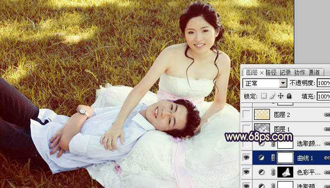 Photoshop调出草地婚片漂亮的暖调黄褐色(3)