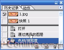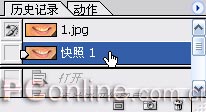 6.合并图层(快捷键Ctrl+E),全选画布(快捷键Ctrl+A),复制到剪帖板(快捷键Ctrl+C)。然后在历史面板中选择“快照1”。(图06)