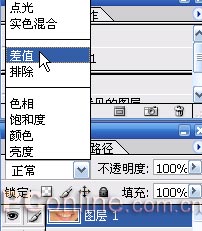 5.将图层1的图层混合模式改为“差值”。(图05)