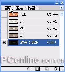 8.在通道面板中,显示“图层1蒙板”,隐藏“RGB”通道。选择“图层1蒙板”并粘贴(Ctrl+V)。(图08)