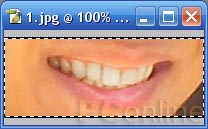 简单的使用套索工具选择牙齿,褪色并调节牙齿明度是不适当的,它会引起牙齿(明度)过曝。通过创建图层蒙板,不仅能更精确的定位需要编辑的脏色区域(译注:本例即指牙齿黄色区域),而且它能保持原始图片做为背景图层,使得反复调整牙齿成为可能。