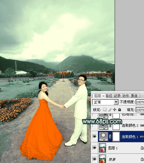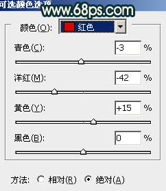 2、创建可选颜色调整图层,对红、青、白、黑进行调整,参数设置如图2 - 5,效果如图6。这一步把图片中的红色转为橙红色,青色转为青绿色。