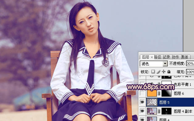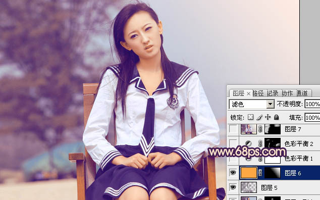 Photoshop调出外景人物图片甜美的淡淡青紫色(6)