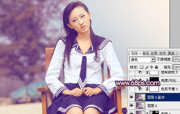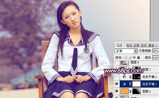 Photoshop调出外景人物图片甜美的淡淡青紫色(7)