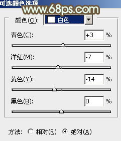 11、创建可选颜色调整图层,对白色,黑色进行调整,参数设置如图20,21,确定后把图层不透明度改为:60%,效果如图22。