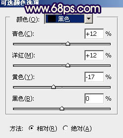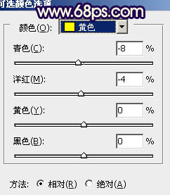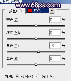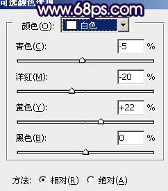 4、再创建可选颜色调整图层,对红、黄、白、黑进行调整,参数是设置如图8 - 11,效果如图12。这一步微调人物肤色,并给暗部增加深蓝色。