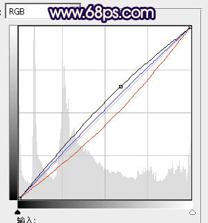 10、创建曲线调整图层,对RGB、红、蓝进行调整,参数设置如图23,确定后把图层不透明度改为:20%,效果如图24。