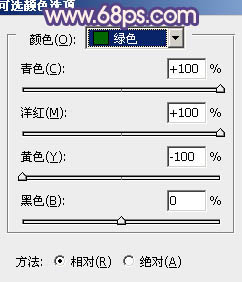 1、打开原图素材,创建可选颜色调整图层,对绿色进行调整,参数设置如图1,效果如图2。这一步把背景绿色转为青色。