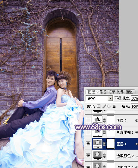 Photoshop调出古城婚片甜美的粉蓝色(4)
