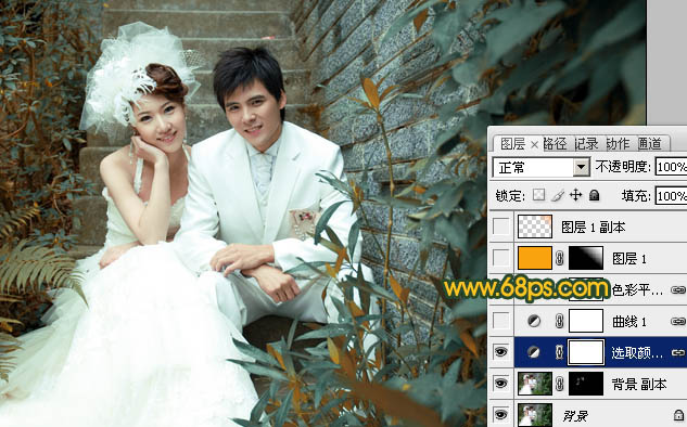 Photoshop打造古典的暗调青绿色婚片(2)