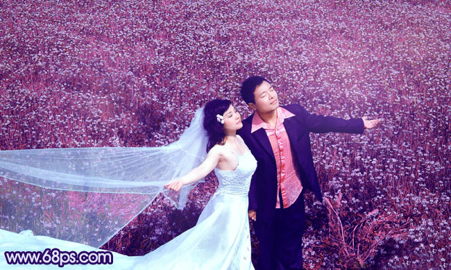 蓝紫色图片的素材选取较为重要,背景部分的颜色不要太复杂,这样可以用色相/饱和度等调色工具快速把背景色转为想要的基色,然后再微调整体及局部颜色即可。