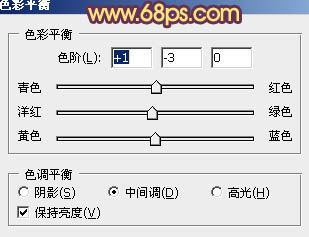 5、创建色彩平衡调整图层,对阴影、中间调、高光进行调整,参数设置如图13 - 15,效果如图16。这一步微调暗部及高光颜色,把图片颜色调柔和。