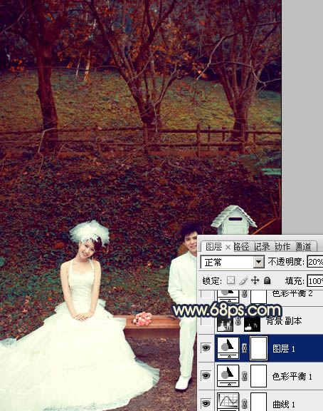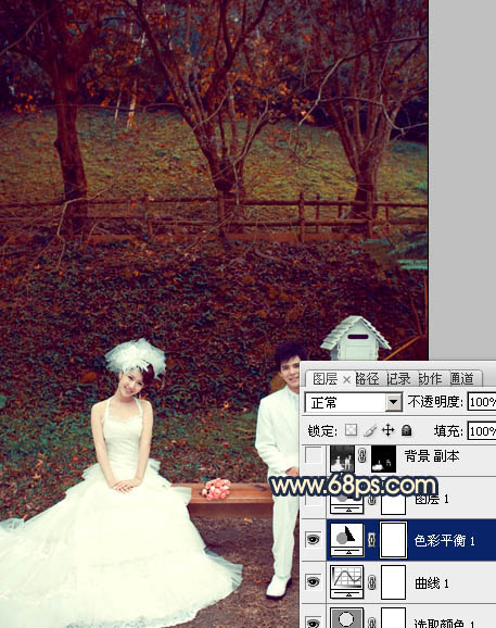 Photosho调出公园婚片漂亮的暗红色(4)