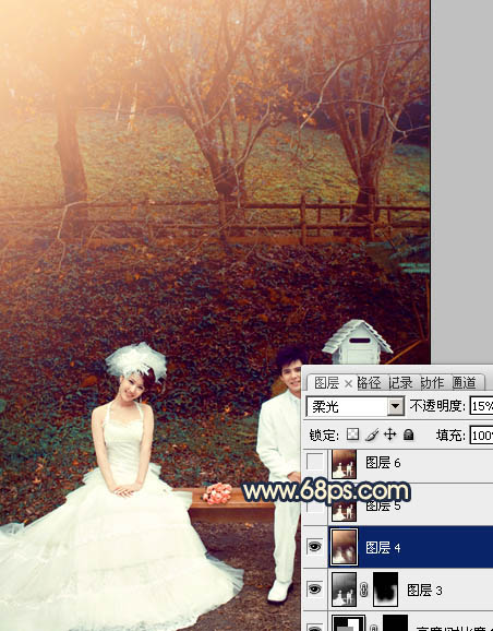 10、新建一个图层,盖印图层。执行:滤镜 > 模糊 > 高斯模糊,数值为5,确定后把图层混合模式改为“柔光”,不透明度改为:15%,效果如下图。